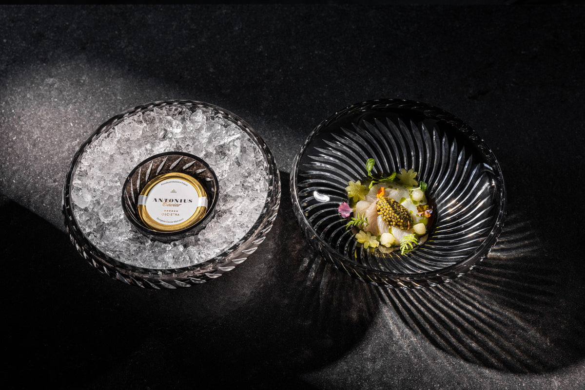 Caviar d’esturgeon russe – Acipenser Gueldenstaedtii Le caviar Oscietra, issu de l’esturgeon russe (Acipenser Gueldenstaedtii), est reconnu pour sa qualité exceptionnelle et son profil aromatique riche. Véritable symbole d’excellence culinaire et de raffinement, il séduit les connaisseurs par son goût noisetté, sa texture onctueuse et beurrée, et sa complexité aromatique. Ses œufs de taille moyenne à grande arborent une palette de couleurs remarquables, du brun foncé à l’or lumineux. Préparé avec précision selon la méthode traditionnelle “Malossol” (faible salage), ce caviar reflète un équilibre parfait entre élégance et intensité. Caviar Oscietra 6★ Véritable joyau de notre sélection, ce caviar est plébiscité dans les restaurants et hôtels les plus prestigieux au monde. Sa richesse aromatique, sublimée par une touche de noisette, et la taille généreuse de ses grains, issus des femelles les plus âgées, en font un produit rare, symbole de luxe et de royauté. Taille des grains : > 3,0 mm